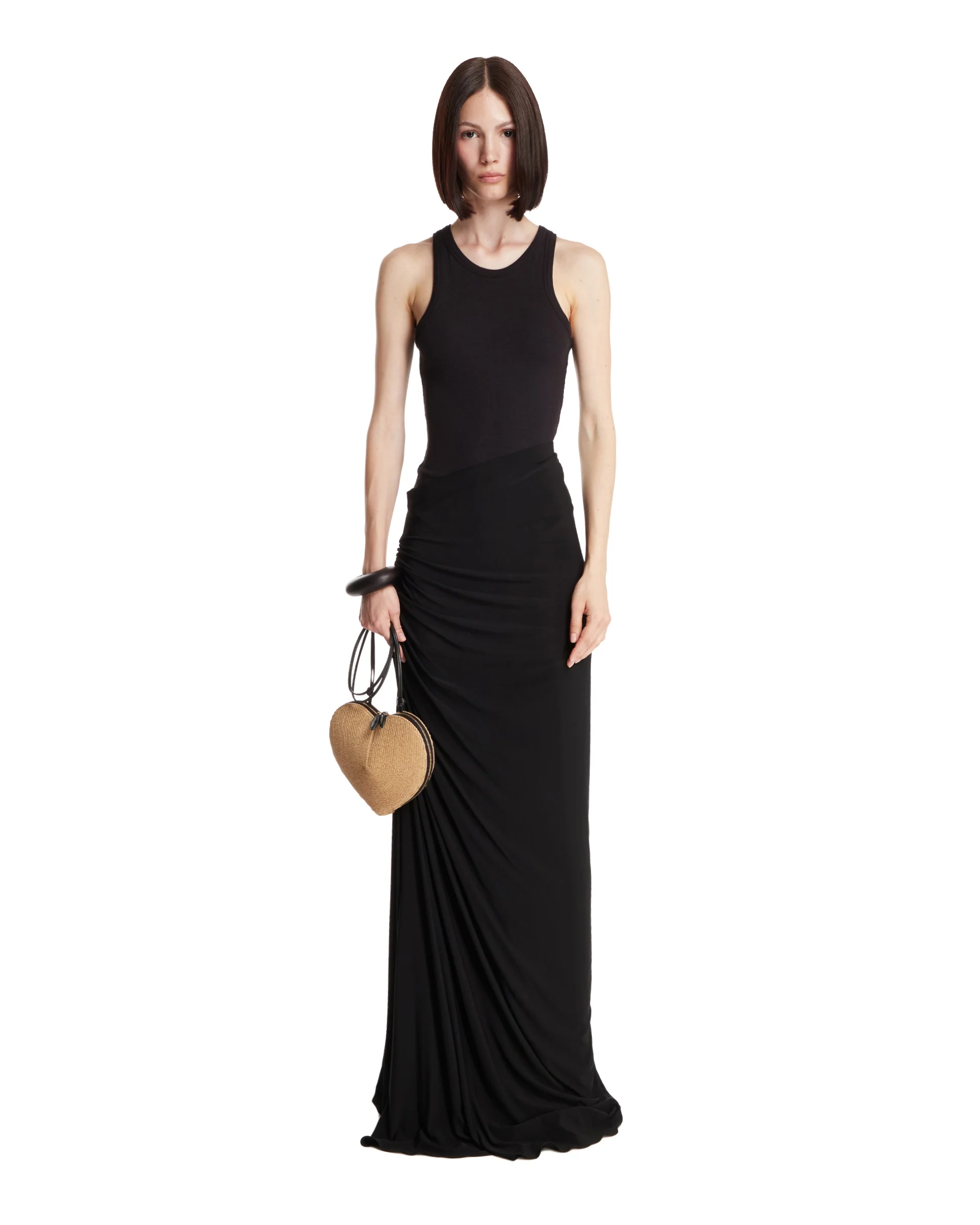Top A Costine Nero di Alaia. Realizzato in misto cotone nero, senza maniche, girocollo, design a costine, vestibilità aderente. Alicia è alta 173 cm e indossa una 36.
