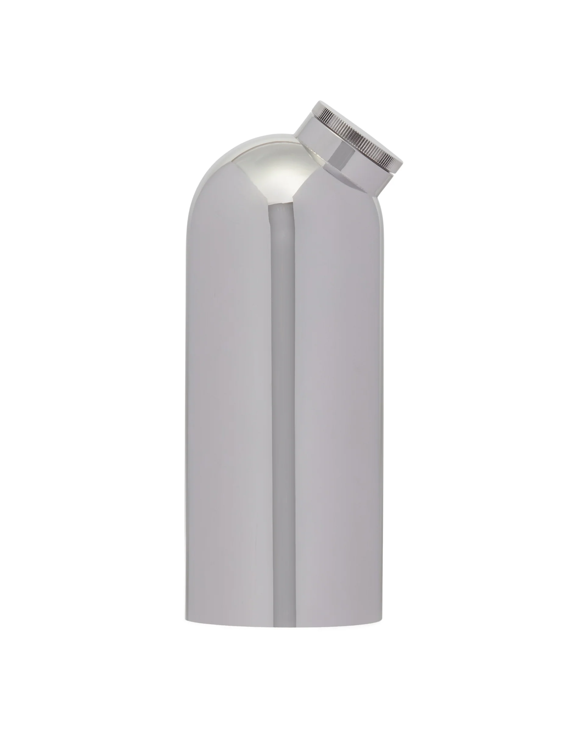 Borraccia Scultorea Argentata di Altherr/Weiss. Realizzata in acciaio inossidabile monomateriale, finish in argento specchiato, beccuccio angolato, silhouette unica.