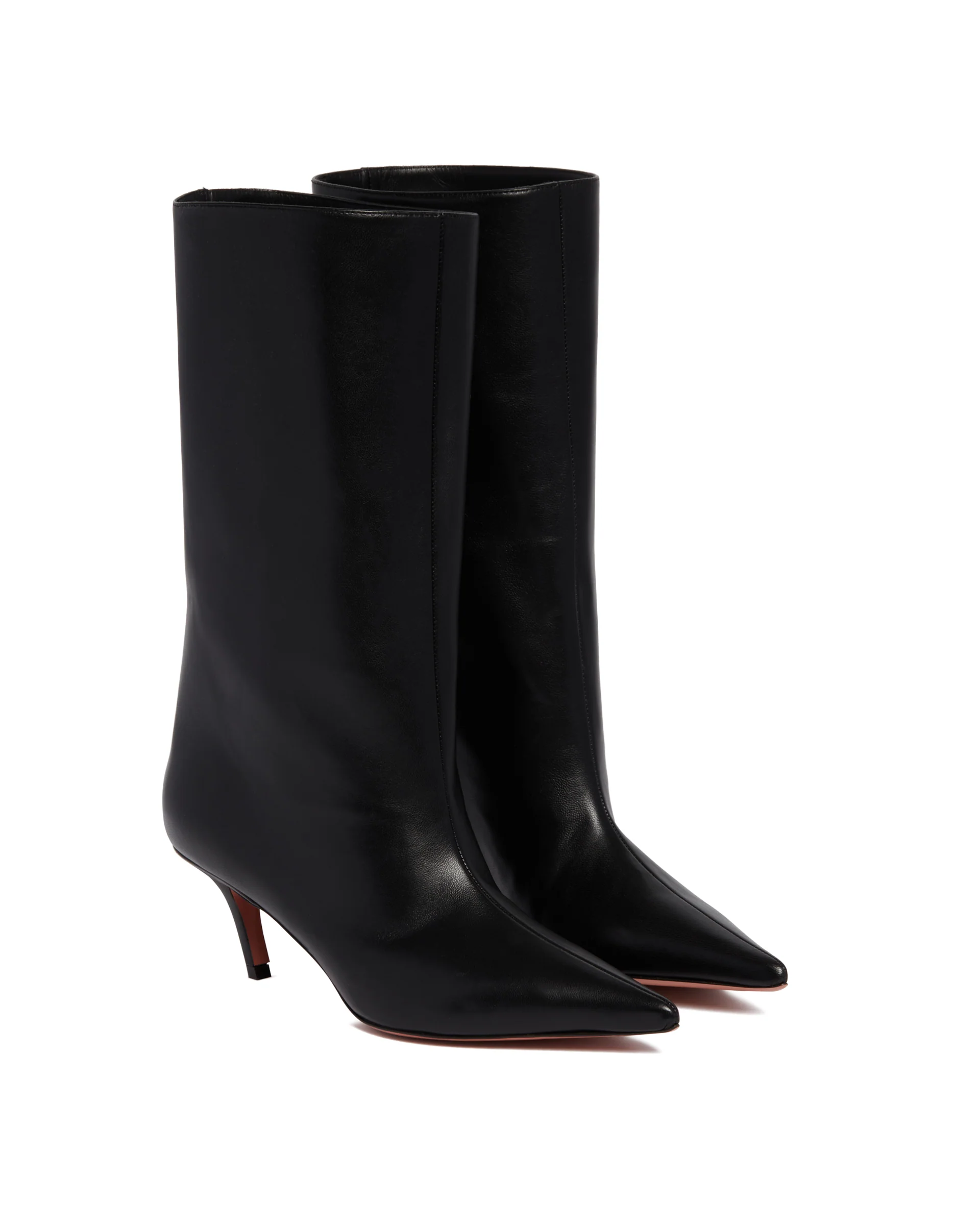 Stivali Fiona Neri In Pelle di Amina Muaddi. Tomaia in pelle nera, punta affusolata, tacco inclinato, fodera in pelle, modello slip-on. Altezza Tacco: 6 cm