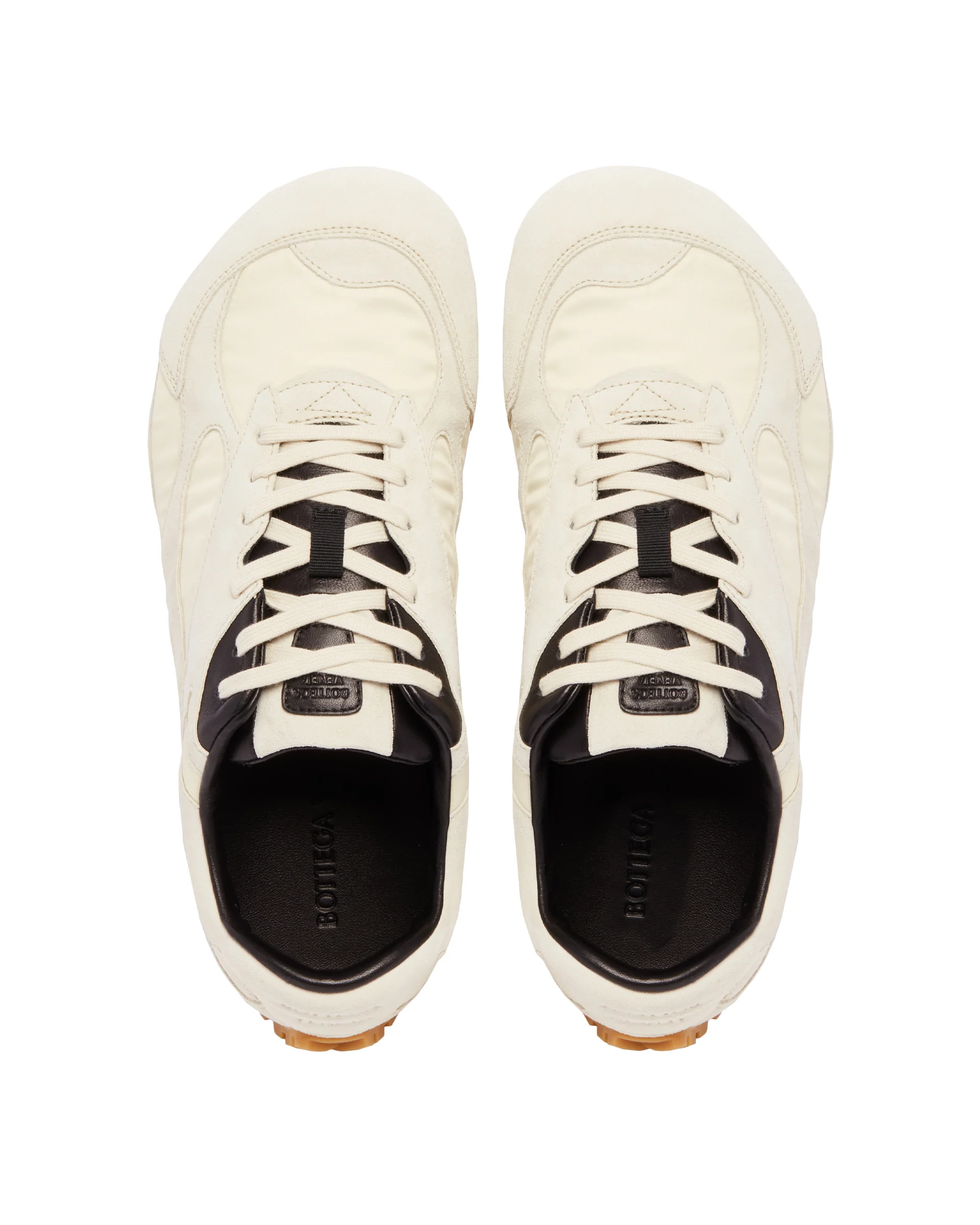Sneakers Orbit Flash Bianche di Bottega Veneta. Tomaia in suede e nylon bianca con profili in pelle a contrasto, allacciatura classica, interno in pelle. Suola esterna in gomma, calzata regolare. Logo impresso sul tallone e sulla linguetta.