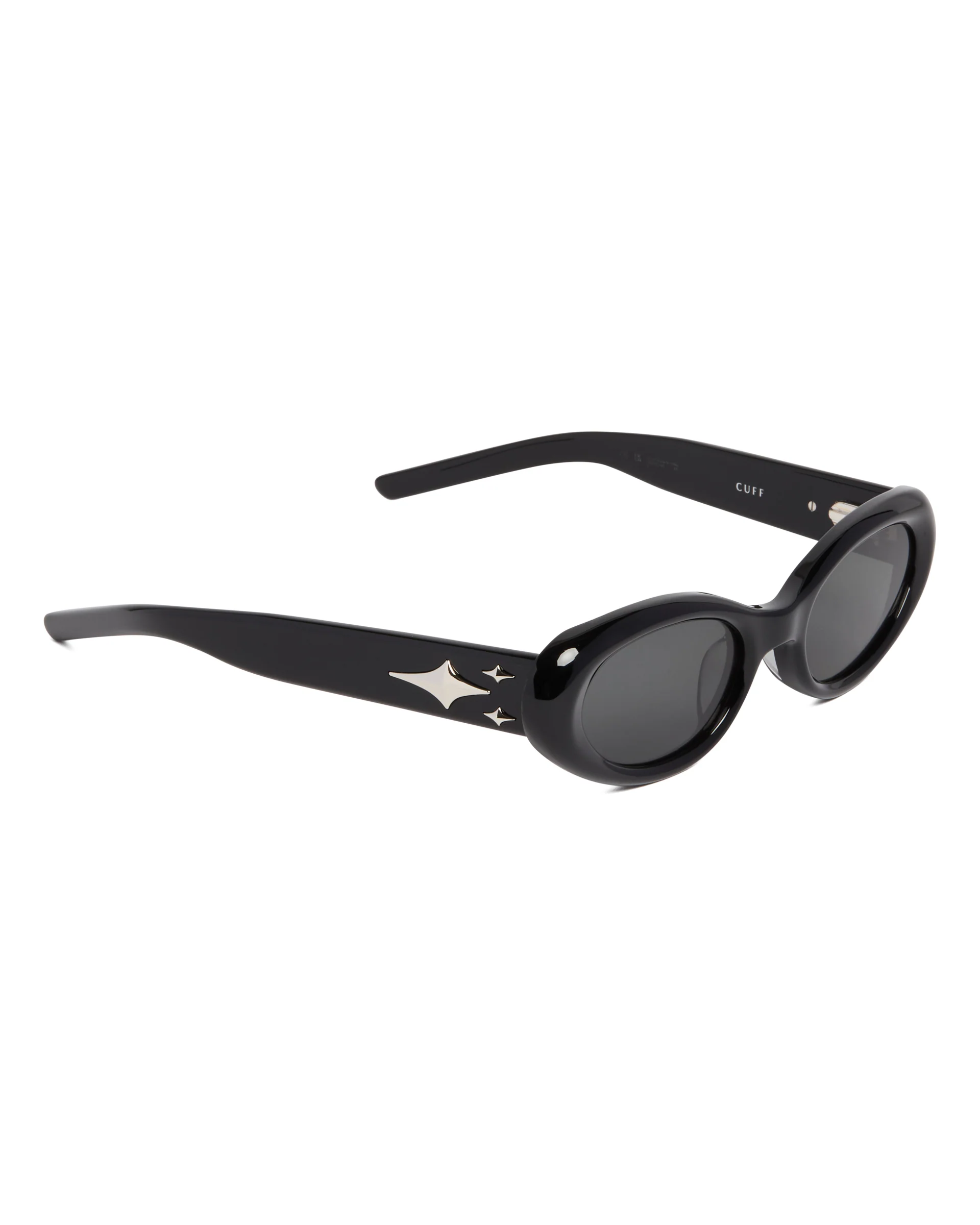 Occhiali Da Sole Cuff 01 Neri di Gentle Monster. Montatura in acetato nero, astine con il logo caratteristico della Bold Collection. Lenti nere, silhouette ovale.